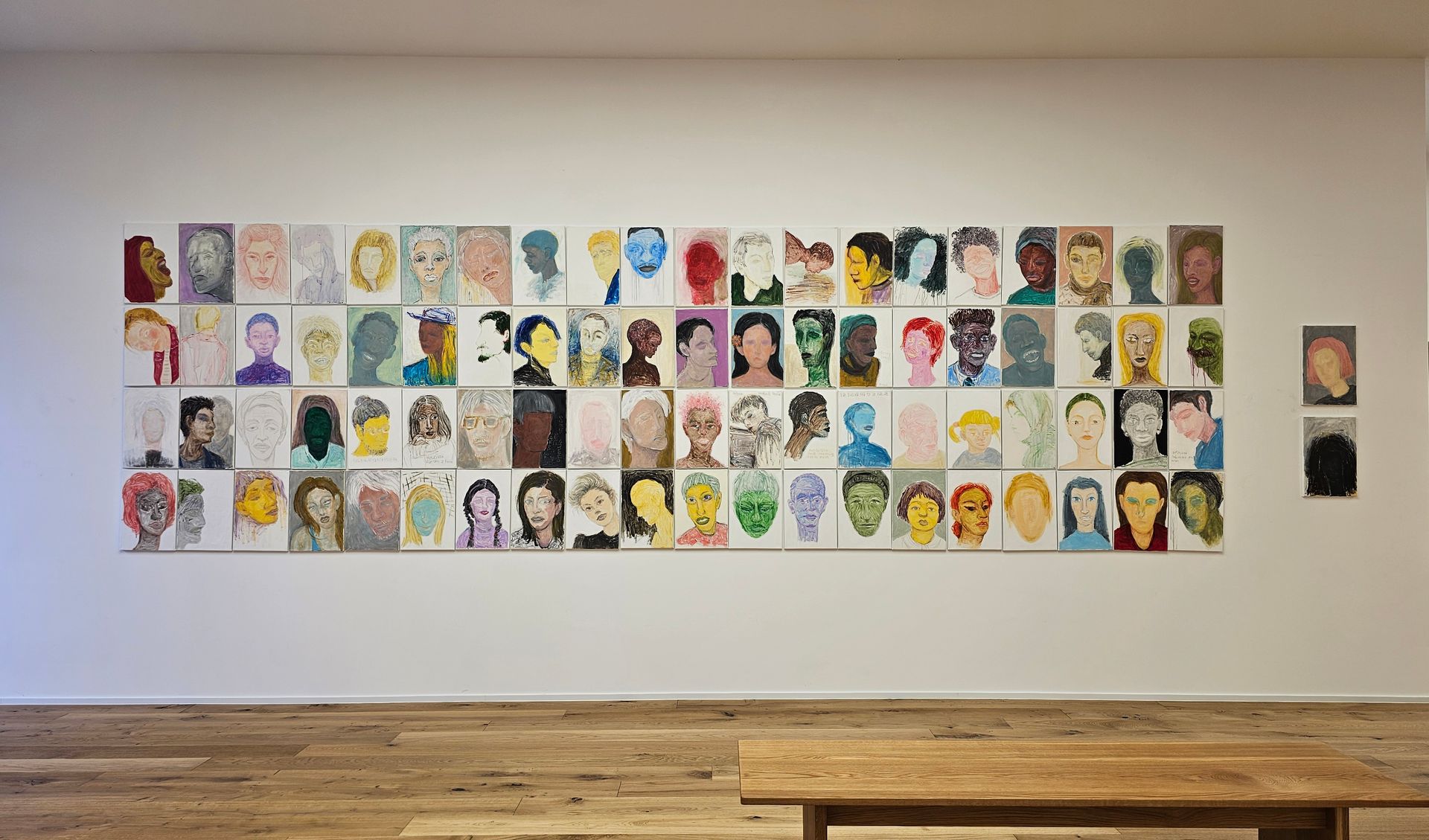 그 안에서 발현된 감정의 형태들은 얼굴이라는 기호를 통해 다듬어지고 완성된다. 얼굴은 기억을 담는 장소이자 오감이 살아 있는 곳이다. 나와 외부 세계의 경계이자 교류의 통로이며, 삶의 모든 파동이 전달되는 터이다. 에너지가 있는 모든 생명체는 근본적으로 추상이다. 그것은 개연성도, 형식도 없이 작동하는 순수한 자율성이다. 그래서 내 감정의 형태는 무규정적, 무제약적이고, 탈중심적이다. 얼굴은 모호한 암시나 불안전한 형태를 띠기 위해 세부적인 것은 생략한다. 인물의 외양을 흐리게 함으로써 생각, 인성, 의도 같은 본질적 요소를 나타내고자 했다. 아름다움보다는 추하고 서투름이 인식 너머 공명을 만든다. 나는 불확실성을 좋아하므로 순연히 인간의 감정을 표현하는 것을 추구한다.